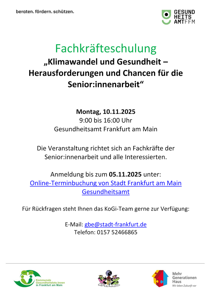 Fachkräfteschulung „Klimawandel und Gesundheit – Herausforderungen und Chancen für die Senior:innenarbeit“
