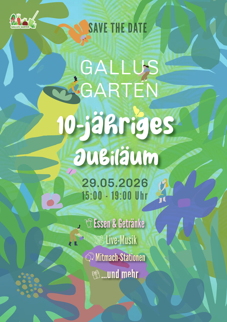 Zum 10-jährigen Jubiläum im Mai möchten wir gemeinsam zurückblicken, feiern und nach vorne schauen. Wir laden alle herzlich ein, diesen besonderen Meilenstein mit uns zu begehen – mit Aktionen, Austausch und natürlich viel Grün.